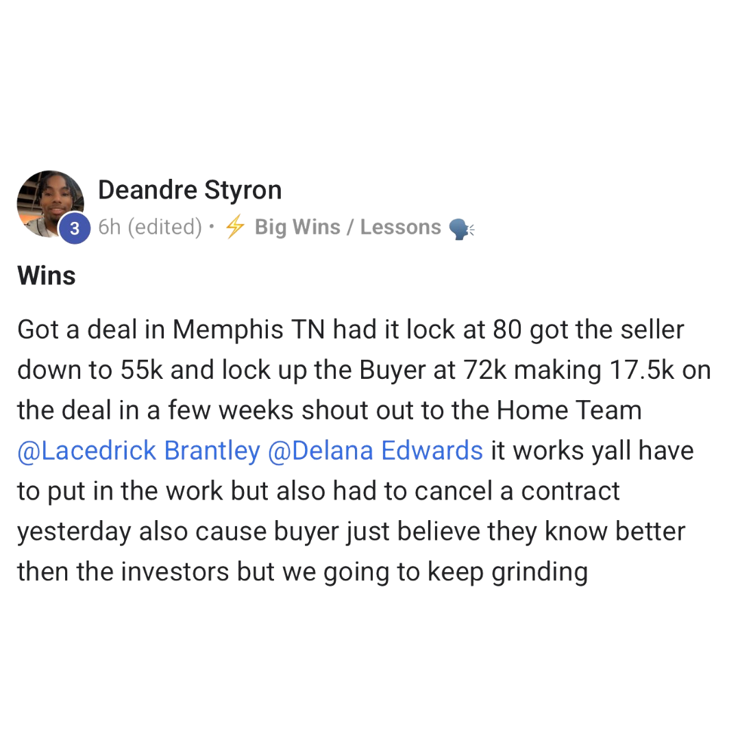 Lacedrick Brantley is a 6-figure real estate wholesaler and ads consultant who helps investors build consistent $30K–$40K+ per month businesses through wholesaling and proven marketing systems. As the creator of Certified Closers, he’s coached hundreds of new and experienced wholesalers—turning complete beginners into confident closers.